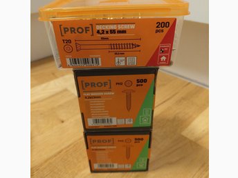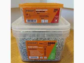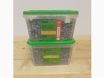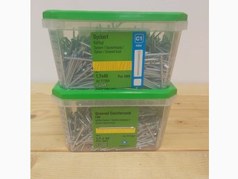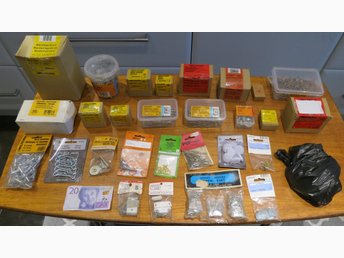 9 kg diverse oanvända skruvar, spikar och andra fästelement säljes