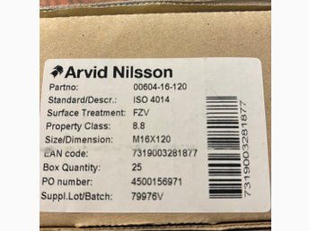Arvid Nilsson Sexkantskruv M16x120 A4-80