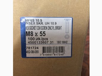 Arvid Nilsson M8 x 55 Hex Socket CSK Screw