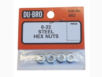 DU-BRO 562, 6-32 Stål sexkantmuttrar, 4st i fp