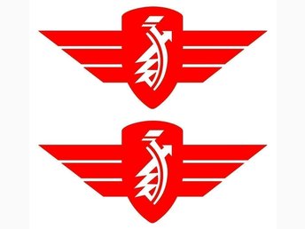 [ DEKAL] JAWA Två st. 8 x 4.7 cm. Röd