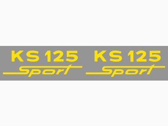 [ DEKAL ] KS 125 Sport. (ZUNDAPP) Två st. 10 x 3.3 cm. Gul