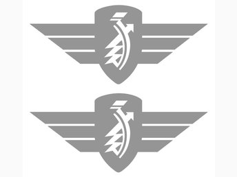 [ DEKAL] ZUNDAPP LOGO. Två st. 8.5 x 3.8 cm. Silver