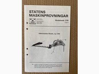 SMP Test Slåttermaskin Busatis Typ 1102 - Meddelande 2358 Traktor Lantbruk