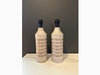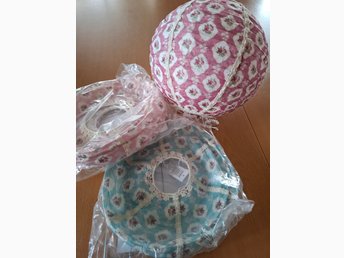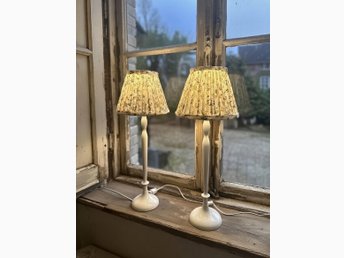 bordslampor – vita lampfötter med blommiga tygskärmar / lantstil