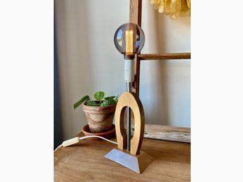 Svenskdesignad bordslampa i trä 70-tal Estonia Malou E14