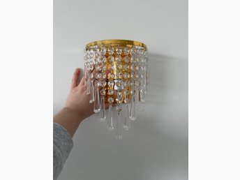 Lampa, vägglampa i mässing med kristaller, mycket vacker, i perfekt skick!