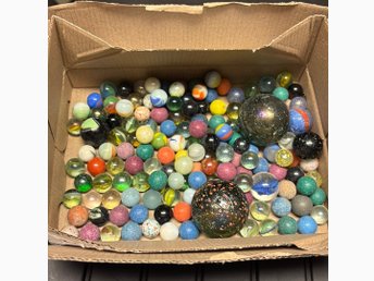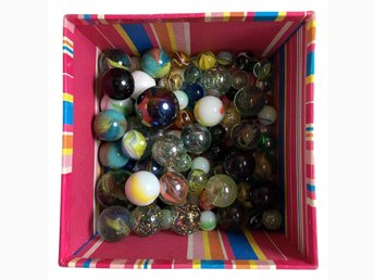 Retro Kulor Glas Blandade Färger Storlekar Med Randig Ask Vintage Spelkulor
