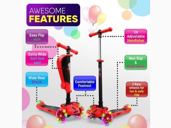 HURTLE 3-hjulig sparkskotrar stående o hopfällbar med justerbar höjd