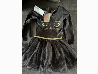 H&M NY svart tyllklänning maskerad halloween katt. storlek 122/128