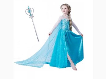 Elsa prinsess klänning + spö/trollstav 110cl (Helt ny)