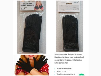 Utklädnad maskerad nya svarta vantar, storlek ONE SIZE (BARN)