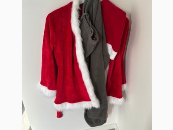 Hel tomtedress med röd jacka, svart skärp, grå byxor, tomteluva stl. 110-116