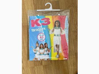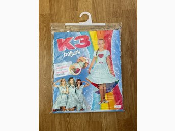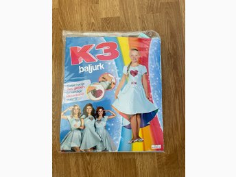 K3 vit, blå klänning, storlek 3-5 år