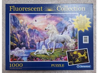 Pussel, 1000 bitar, enhörningsmotiv som lyser i mörker, mycket fint skick