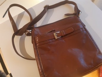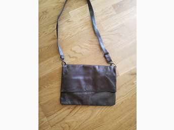 Mörk brunn skinn axelremsväska