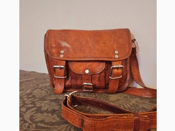 Vintage Gusti skinnväska i äkta läder – Brun satchel / axelremsväska