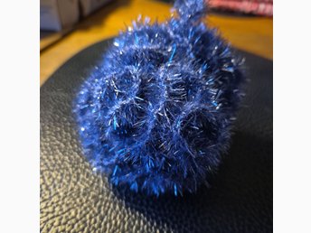 Virkad duschboll I glittrigt blått garn