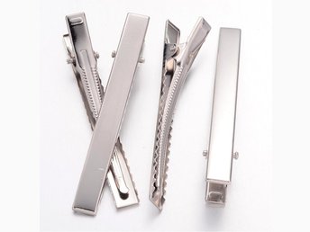 6 st Silverfärgade hårklämmor 7,7 cm. långa och 9 mm breda