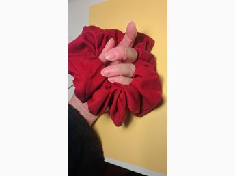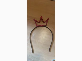 Handgjord Röd Diadem (Nr 1) med knyted tyg C:a 39 cm. omkreta