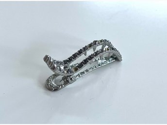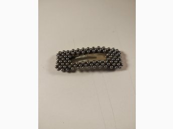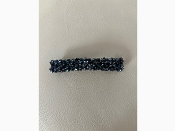 Elegant silverfärgat spänne med mörkt grå blå stenar/pärlor, oanvänt
