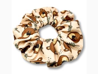 Björn & tallmönstrad XXL överdimensionerad ribbad Scrunchie Enchanted Scrunch NY