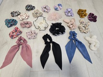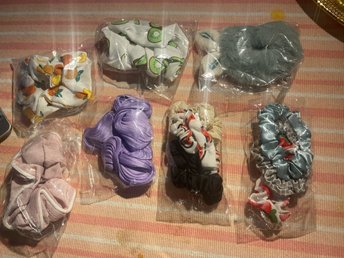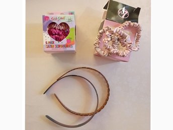 Hårkit! 9 satin scrunchies och två brunsvarta diadem 90-tal