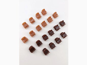 20 st. Små Hårklämmor 14x15 mm mm i 2 Bruna färger