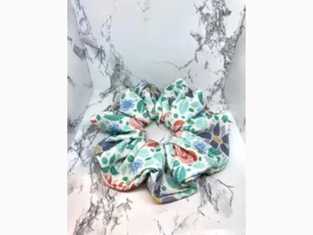 Blå blommönstrad XXL överdimensionerad vår Scrunchie Enchanted Scrunch NY