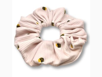 Ljusrosa bimönstrad överdimensionerad ribbad Scrunchie Enchanted Scrunch NY