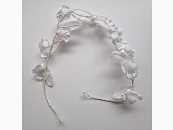 Vintage (1980-tal) Hårdiadem med vita blommor och pärlor