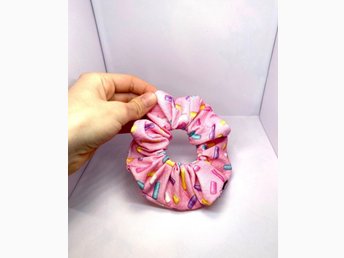 Mini rosa strössel Scrunchie hårsnodd från Enchanted Scrunch NY
