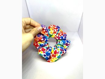 Mini regnbågs hjärtan mönstrad Scrunchie snodd från Enchanted Scrunch NY Pride