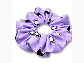 Lila pingvinmönstrad överdimensionerad XXL scrunchie Enchanted Scrunch NY