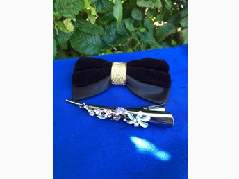Hårspänne dubbel rosett sammet och guldfärgad och en hårklämma med blommor