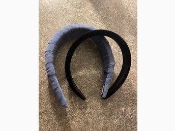 2 Hårband, diadem, ett från Mardim Accessoires. Blått tyg och svart sammet
