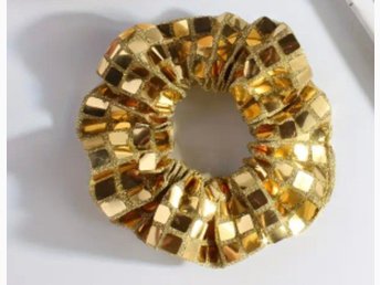 Hårsnodd välvd guldig dekoration MYCKET FINT SKICK svart gummisnodd håraccessoar