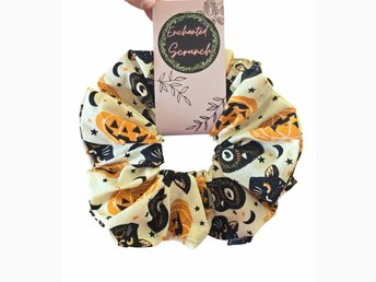 Vit katt uggla & pumpahuvud överdimensionerad XXL Scrunchie Enchanted Scrunch NY