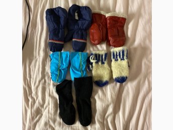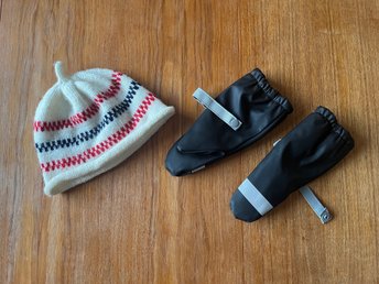 Stickad mössa och vattentäta vantar, strl ca 1 år
