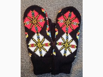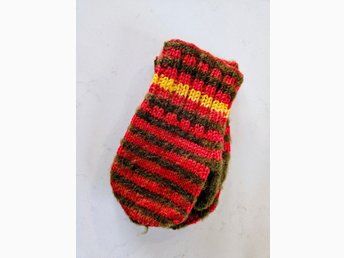 Retro Röda, bruna, gula stickade vantar 70-tal