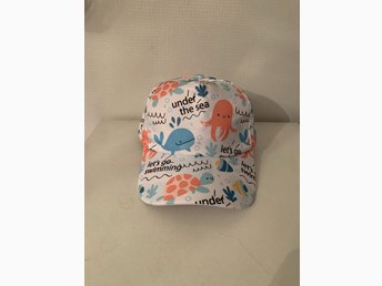 Vit keps ny med fiskar.