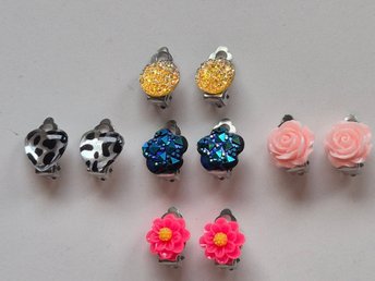 Örhängen CLIPS x 5 barnörhängen Nickelfria hjärta blomma ros till små barnkalas*