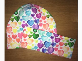 Mössa stl 50/52 med fleecefoder Hjärtan Vit