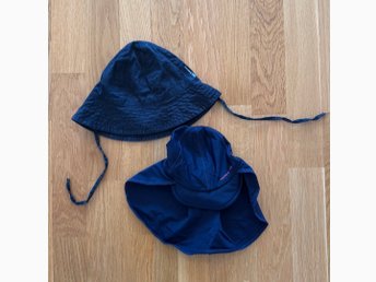 Två solhattar/badmössa från Polarn O. Pyret stl 44-46