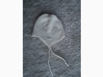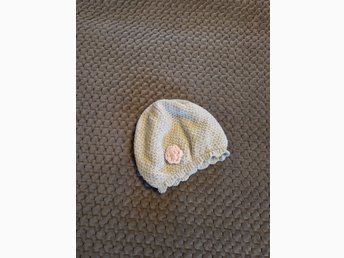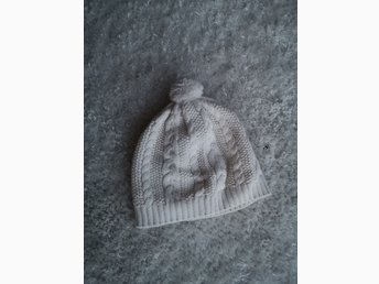 H&M vit mössa stickad bomull, storlek 68, 4-6 månader