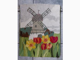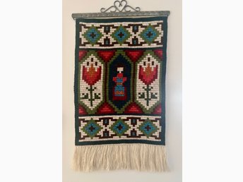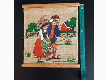 Väggbonad med folkloremotiv 64x34 cm vintage Retro Hantverk 70-tal