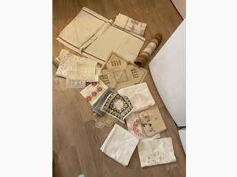 Diverse Vintage Textilier - Broderade Dukar och Löpare
