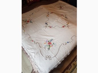 Mormors allra finaste stora handbroderade bomullsduk 140 cm x 175 cm. Nyskick