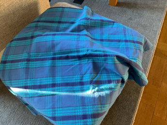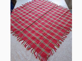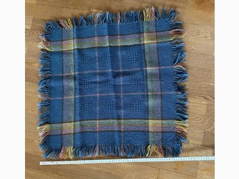Duk/Pläd blå ylle med fransar, duk Allmoge