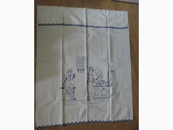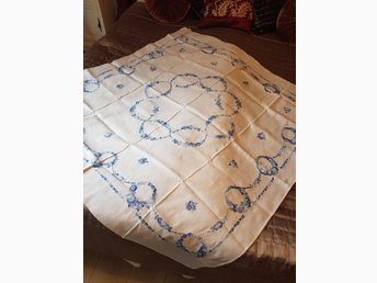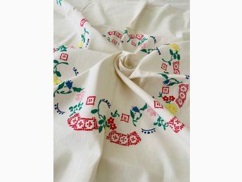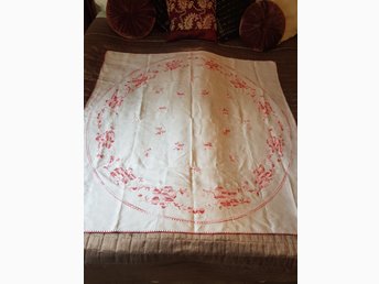 Mormors allra finaste handbroderade bomullsduk 134 cm x 130 cm. Nyskick